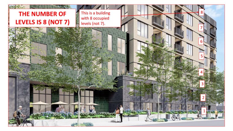 Height: Requesting 84' 10" (8 floors) where 55' is the limit.