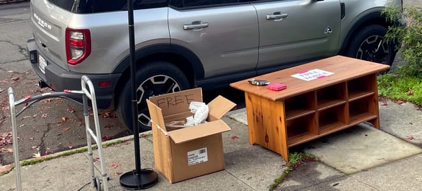 Not all communities encourage curb mining. In fact, most HOAs prohibit it. Several of our friends who live in condos have given us their discarded items to put out on Hudson Street, a popular pickup spot for cars, pedestrians, and bicyclists with a keen eye.