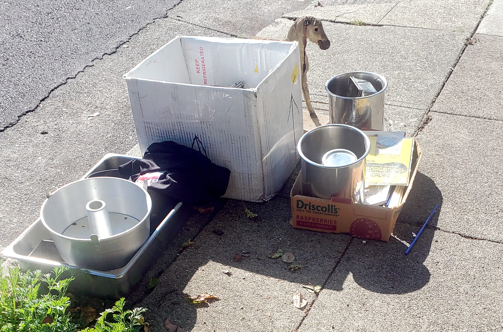 Almost everything was taken within a day, though we don’t know by whom. That’s the beauty of curb mining—the informal practice of collecting discarded items left on the curb for reuse or resale. It may also be referred to as curb shopping or urban scavenging. It’s very popular in Rockridge!