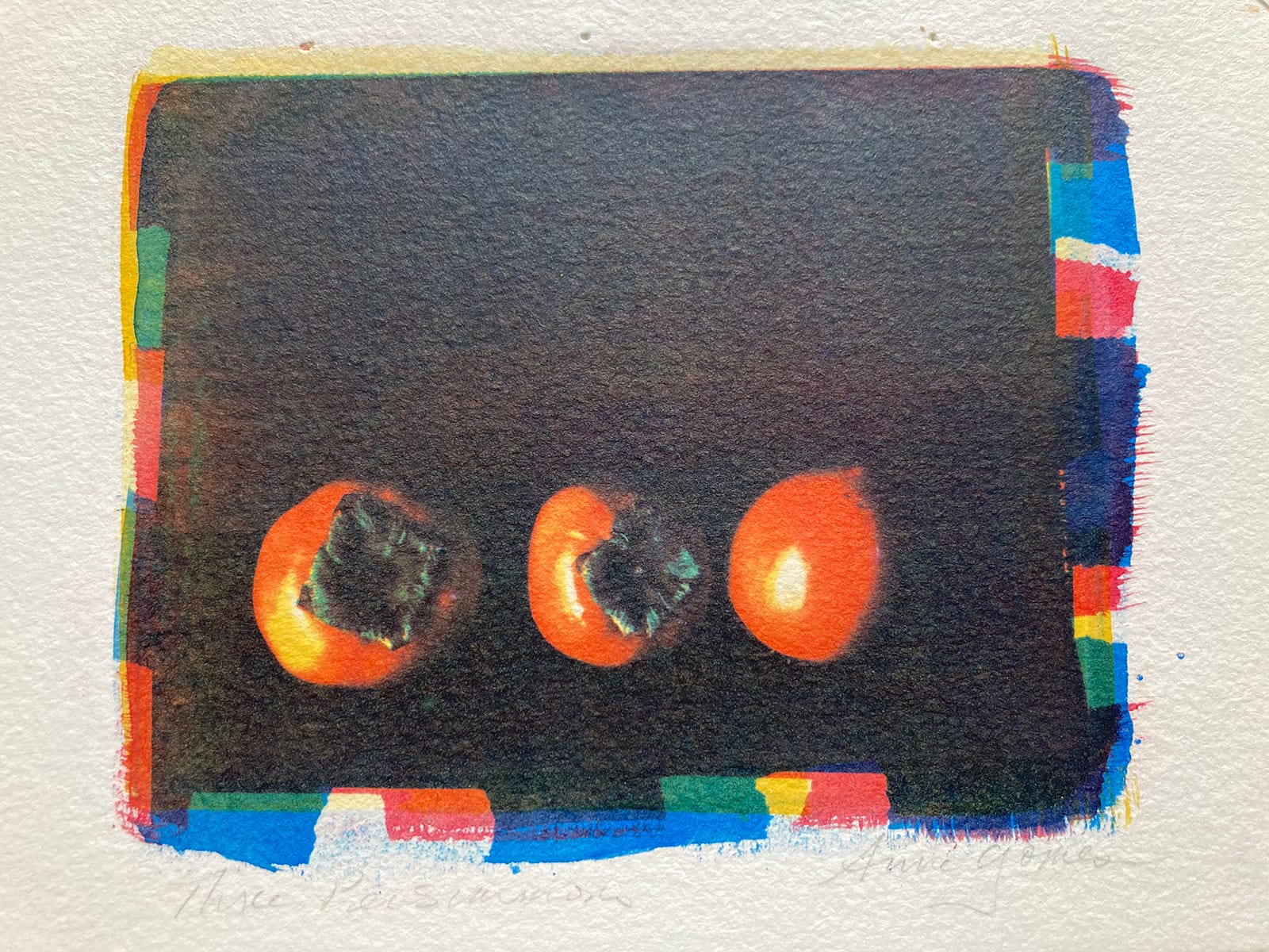1) Three Persimmons; 4×5 Large Format Camera; Three-Color Gum Dichromate Print on Rives BFK Paper