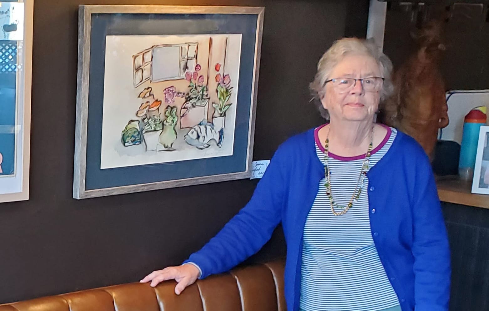 Over time, Susana’s artistic pursuits expanded beyond fabric to include watercolors, paper collages, and greeting cards. Her art entered the collections of Kaiser Permanente and Sutter Health, and her designs were licensed to companies such as Sunrise Greetings and Barnes & Noble. Her watercolor series In My Aunt’s Garden hangs at the Acre Restaurant Gallery in Market Hall.